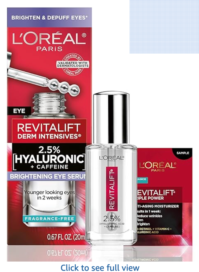 L’Oreal Paris Revitalift Hyaluronic Acid + Caffeine Hydrating Eye Serum for Dark Circles, Fragrance